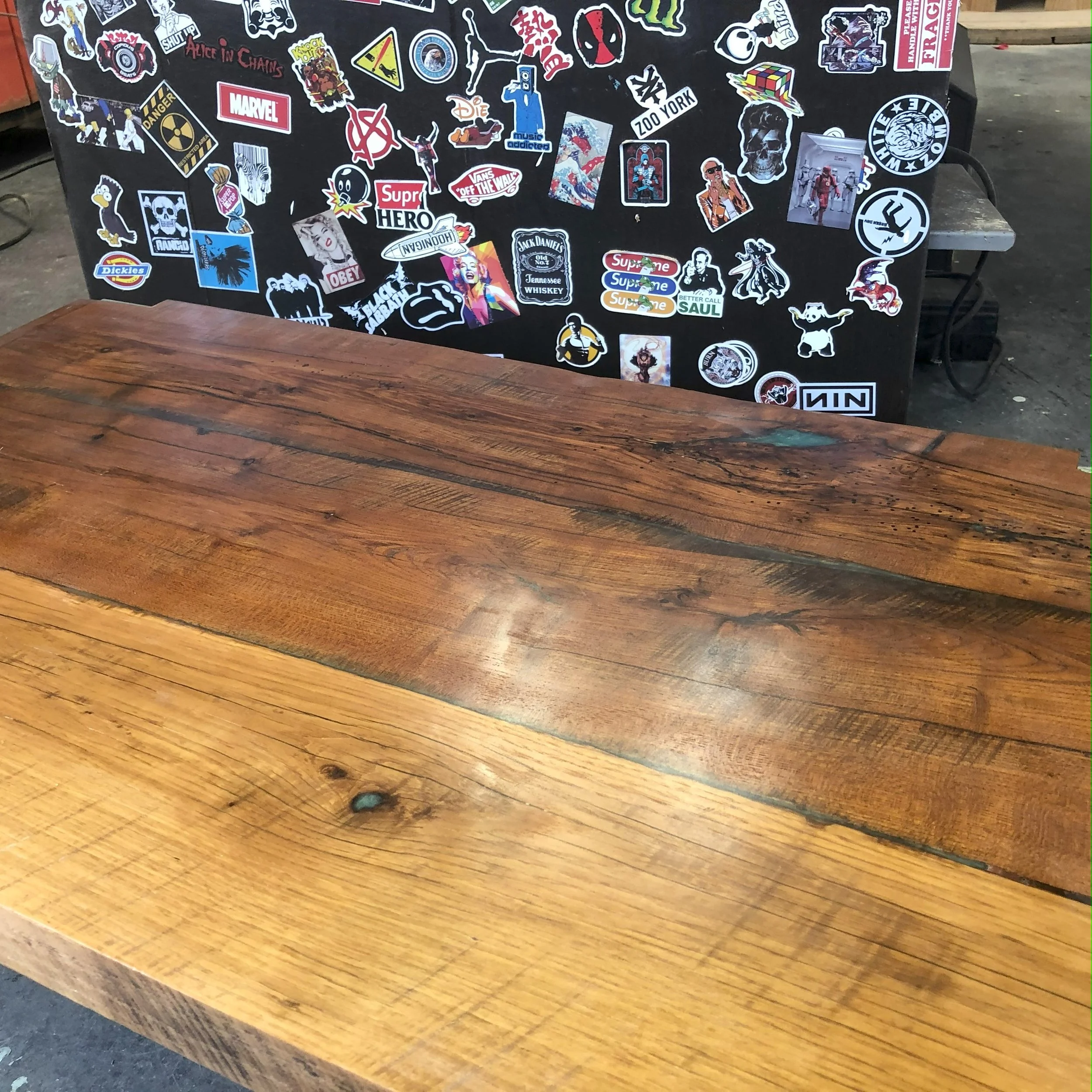 Reclaimed 1890’s beam and board. This was a great build. I will always love the wood/industrial look.